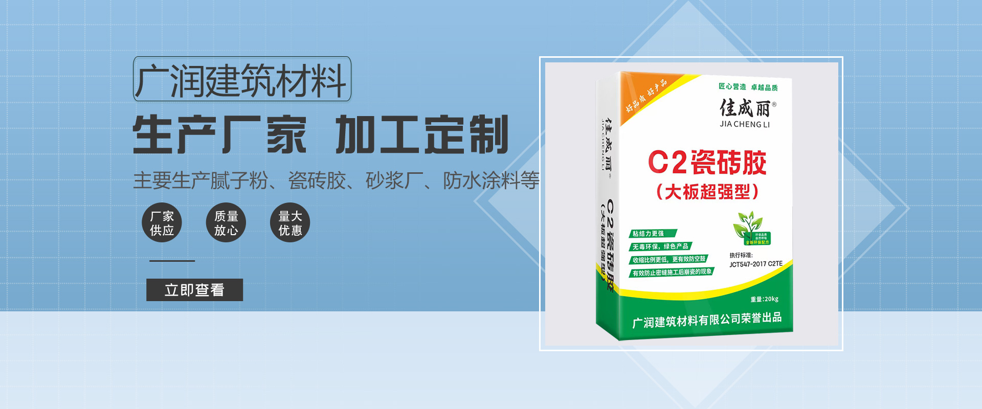 廣西廣潤建筑材料有限公司(原貴港市港南區(qū)威揚建材廠)(www.ggsytl.com),下設產品研發(fā)中心、工程技術中心、營銷服務中心等核心部門,其中貴港市威揚建材廠占地面積2000多平方,已形成年產3萬噸涂料的生產能力。公司擁有先進的生產設備、精密的檢測儀器,已建立起嚴格的質量保證體系,通過了ISO9001質量管理體系認證,涂料產品通過了國家涂料質量監(jiān)督檢驗中心檢驗及SGS環(huán)保檢驗。貴港市威揚建材廠在行業(yè)中享有較高的知名度和美譽度,已成為國內知名品牌。